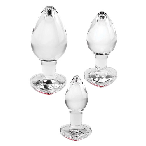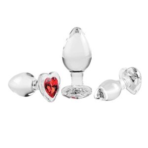 Adam & Eve Red Heart Gem Glass Plug Set