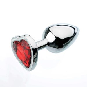 Super-sexy polished aluminum anal plug has a tapered tip, teardrop shape & red heart gem for show. Low prices, free gifts & 100% discreet shipping.