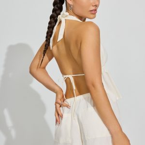 Lina Linen Shorts White women – So soft and with a baggy fit to better accentuate your little tops ! Features Self-tie drawstring at waistband Four-pocket styling Semi-sheer (in lighter colors) Size & Fit Fit: Relaxed Rise: 10.5