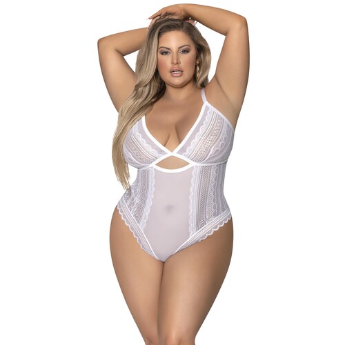 Show off your gorgeous figure and bootylicious best in this cheeky teddy with soft lace and mesh details. Great for the wedding night! Ships quick.