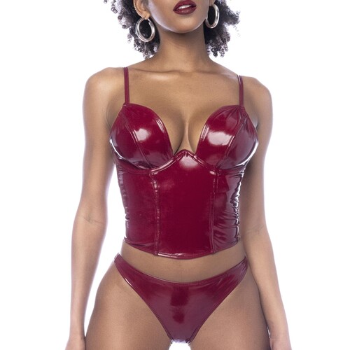 Take center stage with the vinyl Rock Star Treatment Bustier & Thong. Glossy finish & skin-tight fit ensure a chart-topping look! Discreet shipping.