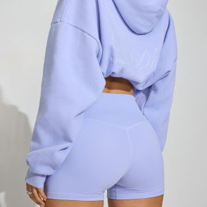 SoftActive Booty Shorts Purple women – Peach emoji. Features Fitted booty short Logo bonded at yoke Stretchy Size & Fit Rise: High Length: Mini Inseam: 3