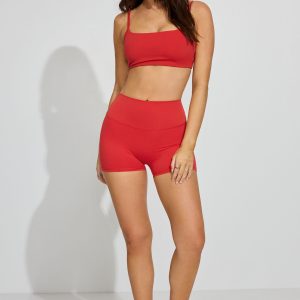 SoftActive Booty Shorts Red women – Peach emoji. Features Fitted booty short Logo bonded at yoke Stretchy Size & Fit Rise: High Length: Mini Inseam: 3