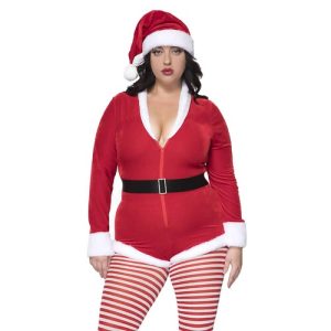 Velvet zip up Santa romper snatches your figure, giving you the ultimate sexy silhouette. Matching hat and faux fur trimming!
